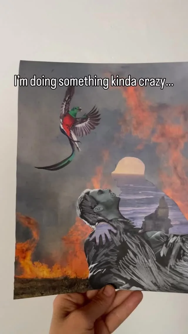 My learned profession is in the fine arts. I went from making large scale paintings, to now my more recent work vintage collages. Be sure to sign up to my mailing list to get early access to my art before the shop goes public!